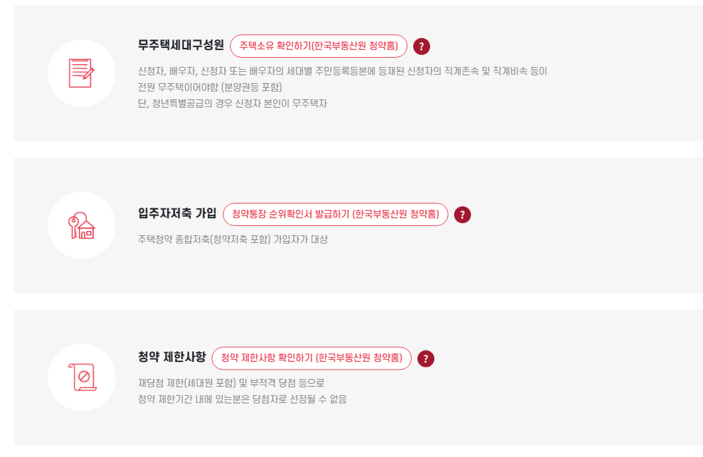 무주택 세대: 신청자와 세대원 전원이 주택을 소유하지 않아야 합니다.